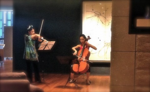 さて、その後は洞爺2泊→蘭越2泊でいくつかのお仕事をしてきました。洞爺の乃の風リゾートがめでたくopen一周年を迎え、1週間ほどずっとウェルカム演奏と夜のクラシックコンサートが企画されました。初日は、この秋結成したヴァイオリニスト能登谷安紀子さん(大学の先輩です)とのデュオ「VirtuRose~ヴィルトゥローズ」、初出動。ヴァイオリンとチェロのデュオなのでレパートリーを増やすのは至難の技ですが、能登谷さんは作曲がお得意!なので、オリジナル曲をどしどし作っていただこうと思います。このデュオは10月28日に札幌大丸きのとやコンサートにも出演予定です。どうぞ宜しくお願いいたします。蘭越のお話は次回・・。