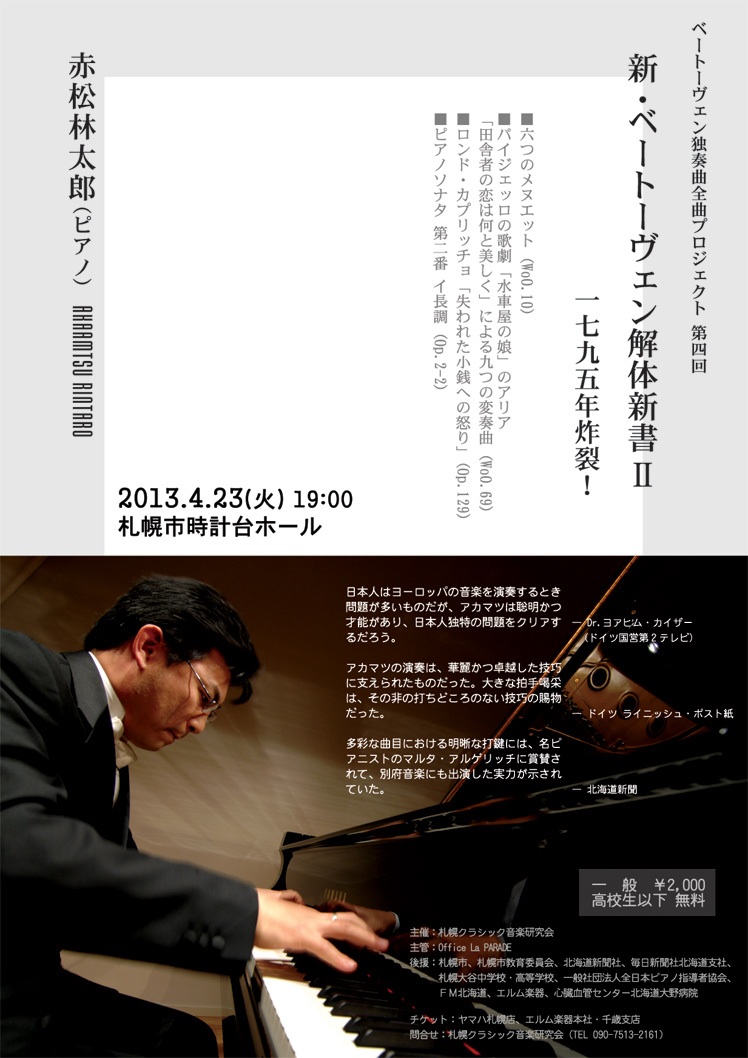 19:00~ 赤松林太郎 ベートーヴェン独奏曲全曲プロジェクト第四回